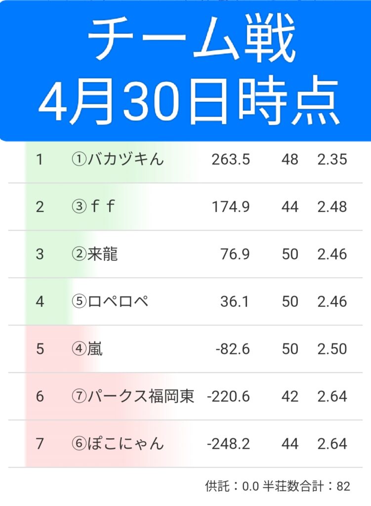 ぽこ道場とは、毎週土曜日に花一で点数計算が出来る方(自己申告)4名で卓を囲んだ時にやる3ヶ月間のリーグ戦です。