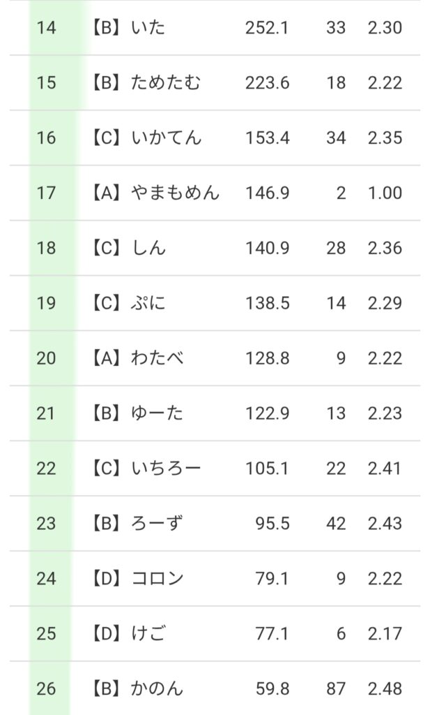 10月のBリーグはB以外が頑張った為低調な結果となりました😅かとたんはまたもやギリギリ引っかかりまして、残留しましたが、11月は規定回数参加出来るのか分かりません🥲まあやれる時は頑張りますのでその時は皆さん対戦よろしくお願いします!もちろんやるからにはAリーグ目指して頑張りますよ🔥