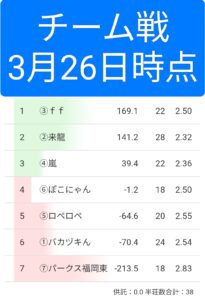 早くもチーム戦が1ヶ月経つことに驚きを隠せないかとたんです🫨 本日は対戦チームは①バカヅキん⑤ロペロペ⑥ぽこにゃん⑦パークス福岡東です! 現在のスコア 注目はぽこにゃん!目立ってはないですが平均着順2.5でしっかりとした […]