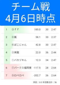 歩いて通勤したら汗ダラダラなかとたんです😅 本日19時から配信ですね!対戦チームは①バカヅキん②来龍③ff④嵐の4チームです。 スコアはこちら 全チームプラスのチームのぶつかりとなります!首位交代もありますね! 注目チー […]