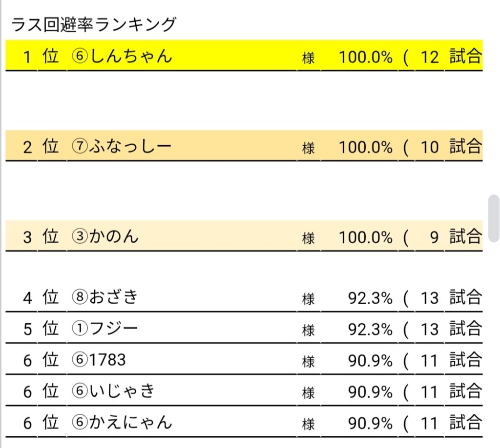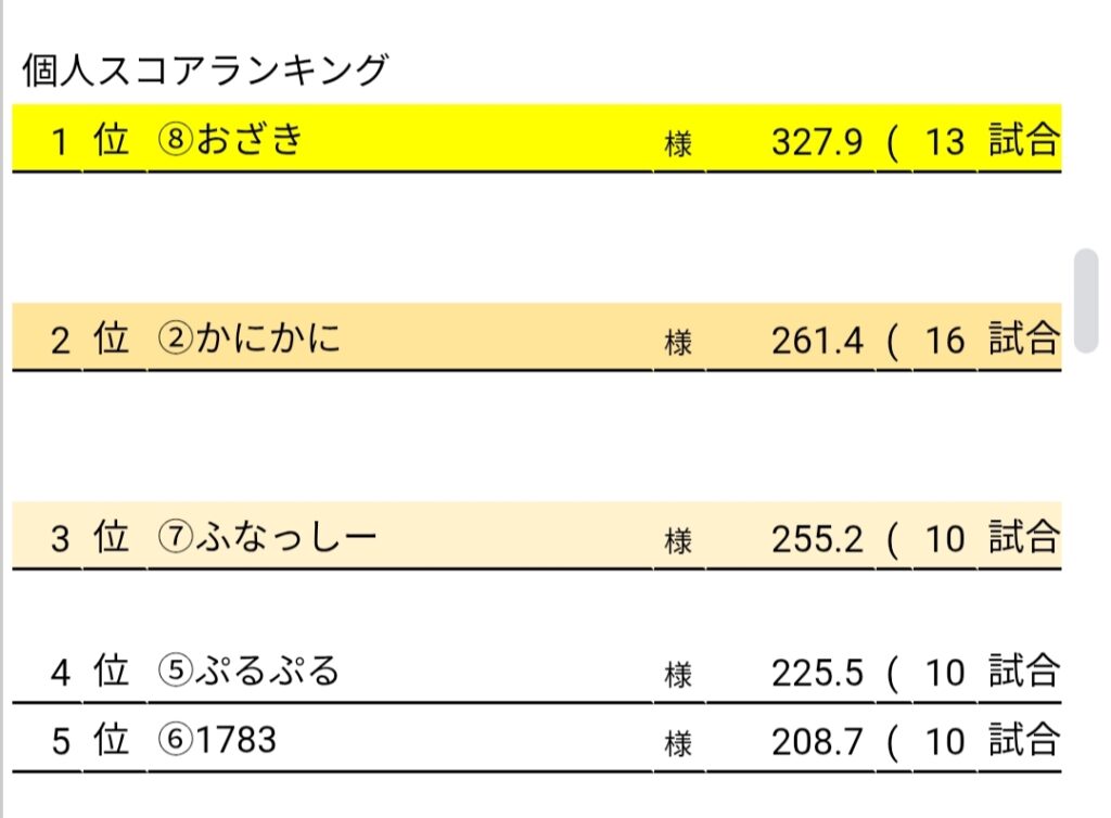 まず、レギュラーシーズン勝ち抜けたのはぬー、羽、EXターミネーター、ぽこにゃんの4チームです。おめでとうございます🎉