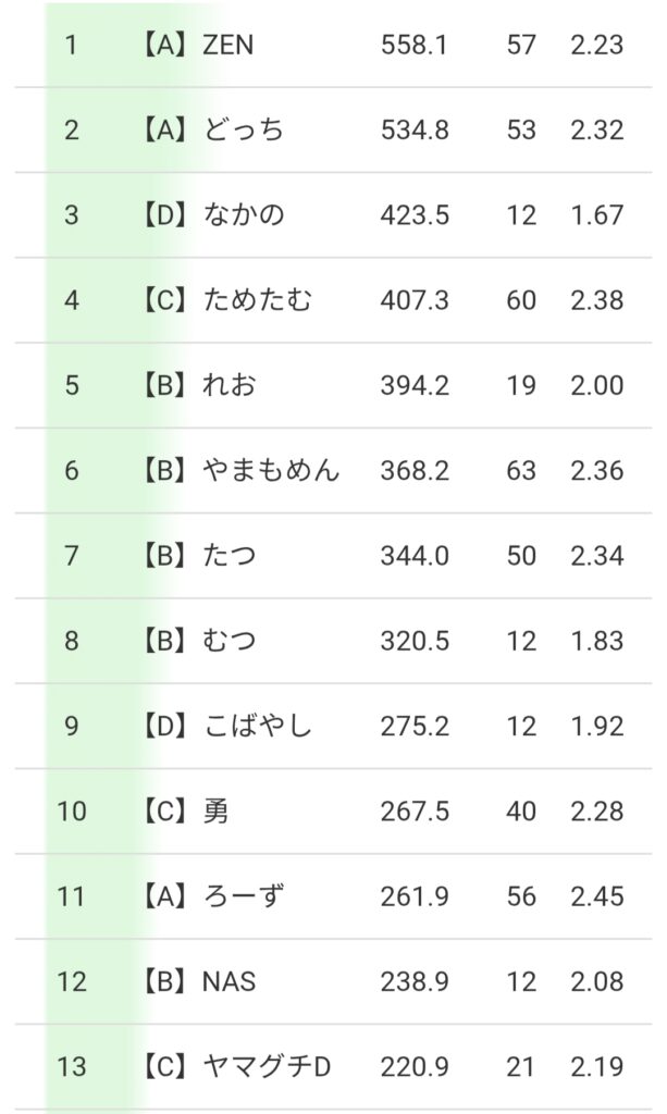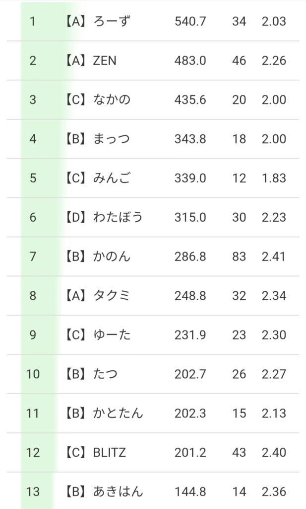 ただ4月から全体1位は特別昇格となってますので、このままだとろーずさん、ZENさんのいずれかはAリーグ残留となります。