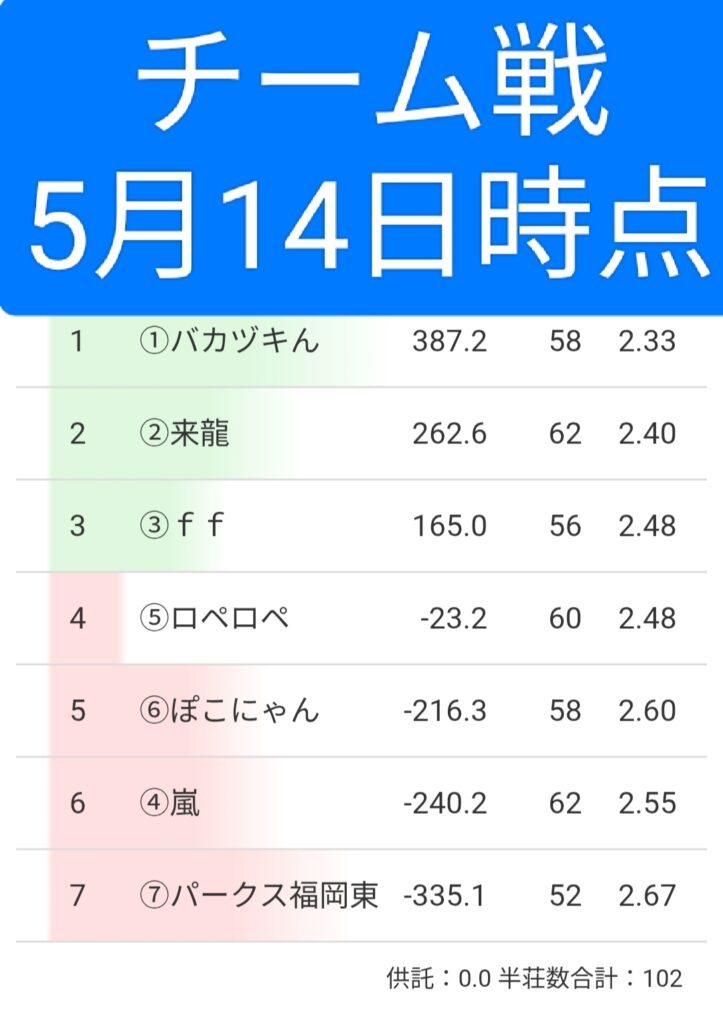 福岡麻雀サークルぽこの会第4回ぽこちー(チーム戦)配信21日にてffのゆーきさんがデイリーダブルやってくれました!これで首位目指してやっていけそうです!