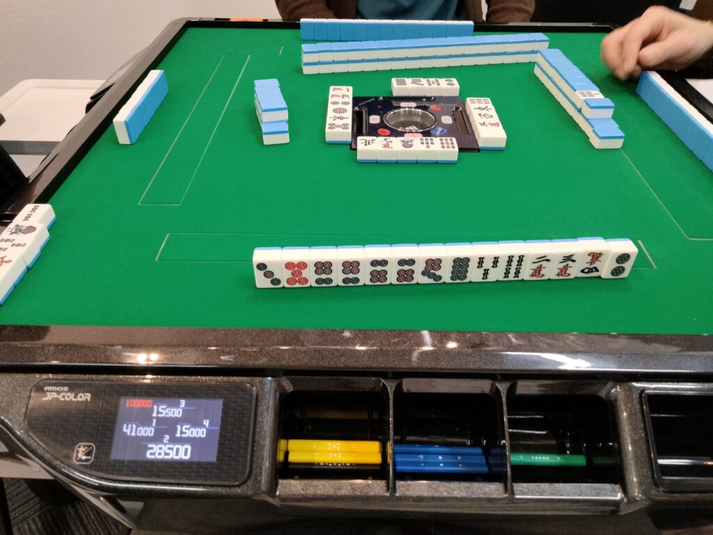 かとたんは4sとしました。ピンズどこが入っても場況が良い待ち(1-4p、4-7p5-8p、1-4-7p2-5-8p)なのでどれになってもあがれるでしょう!