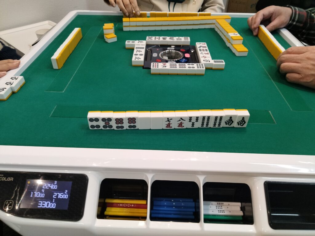 七対子イーシャンテンでありましたが、3sでも切ると白鳴けた場合の形が弱いのでどうするか?ですね。