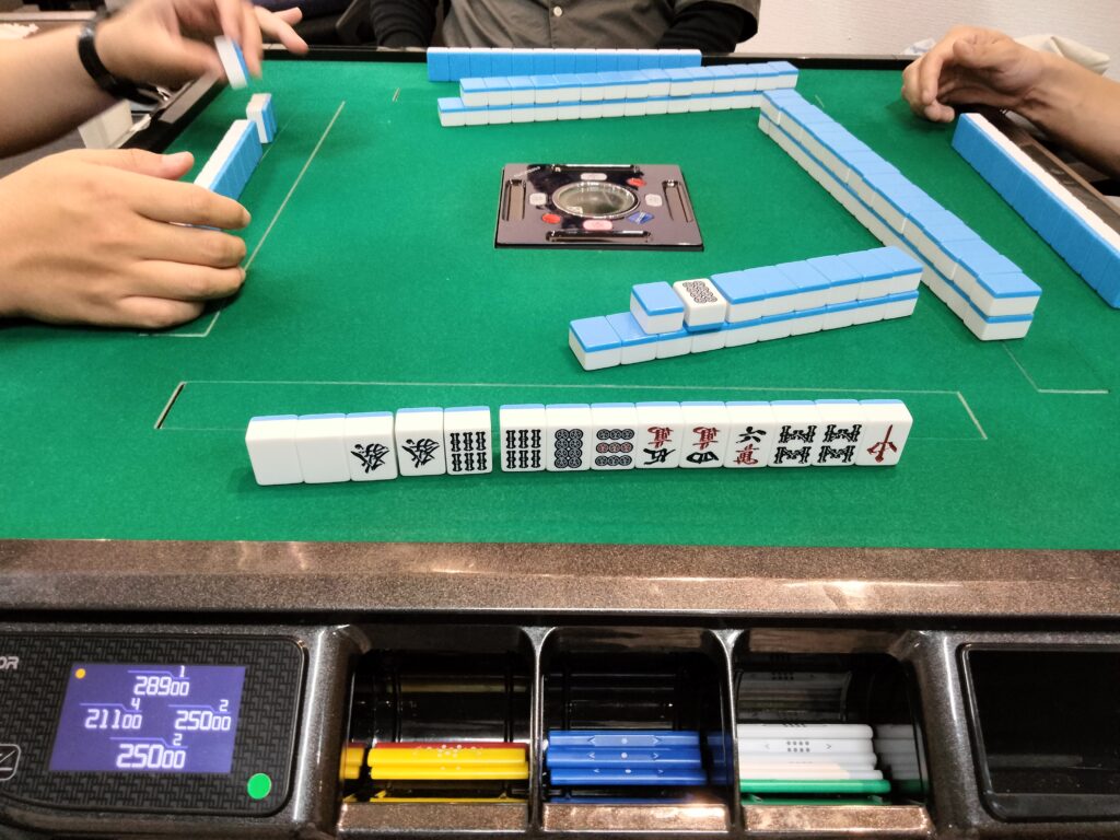 これは流石に悩みましたね…。候補は中、6s、8pですかね。マンズ払うも無くはないです。打6sとしました。ほぼ鳴いていくので打点を最低限5800以上にしたくてドラを使うか中を使うかですかね。大体どれ切っても許されるとは思います🤔