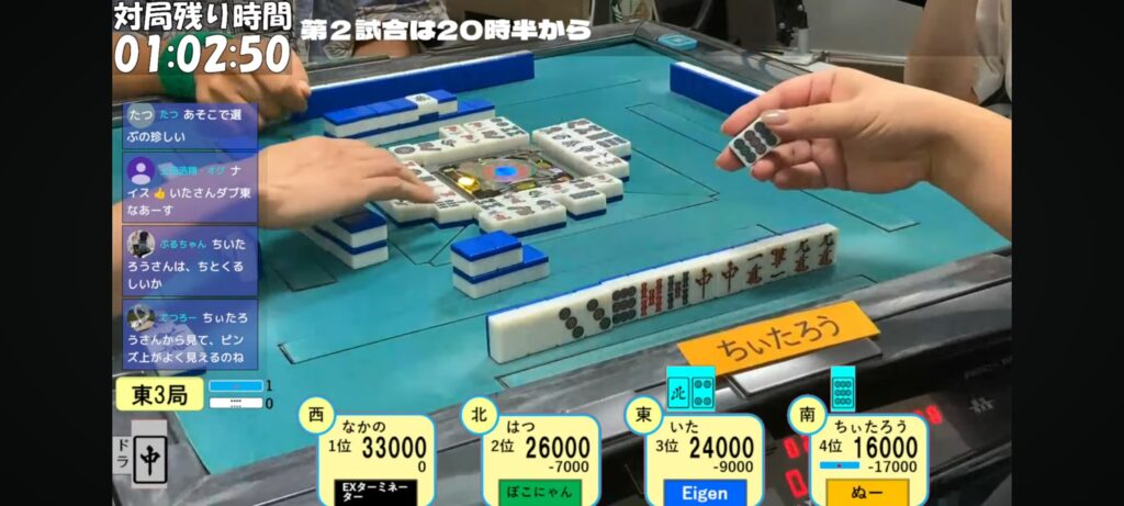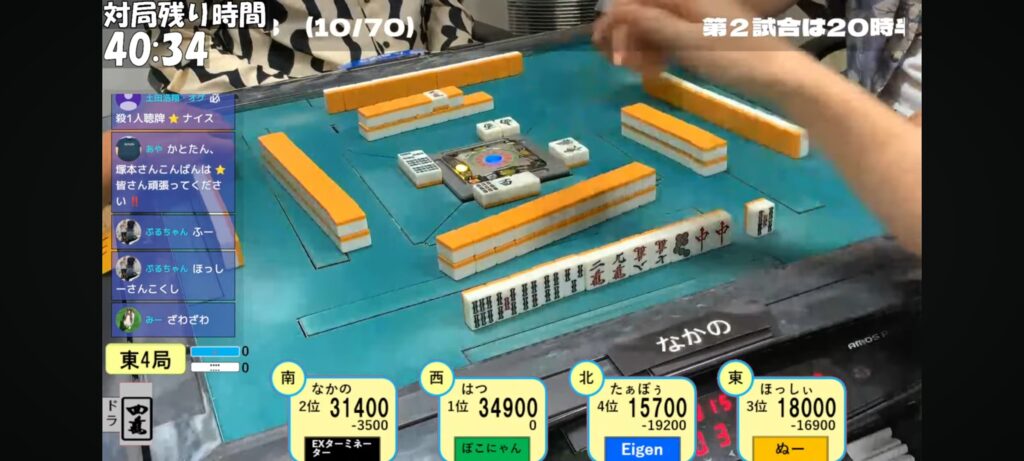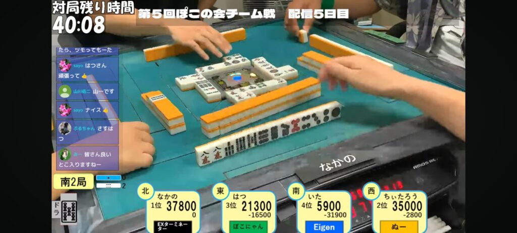 アイゲンチームとぽこにゃんチームは2回戦目も大人しい感じになりましたが、最後いた選手が意地の満貫和了を見せてくれました!