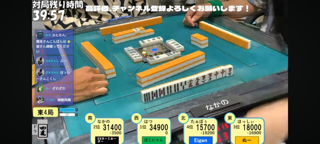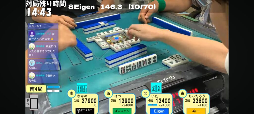 脇の2人はと言うと、はつ選手はコツコツと加点をして4万点台2着。たぁぼぅ選手は手が入らず3着となりました。