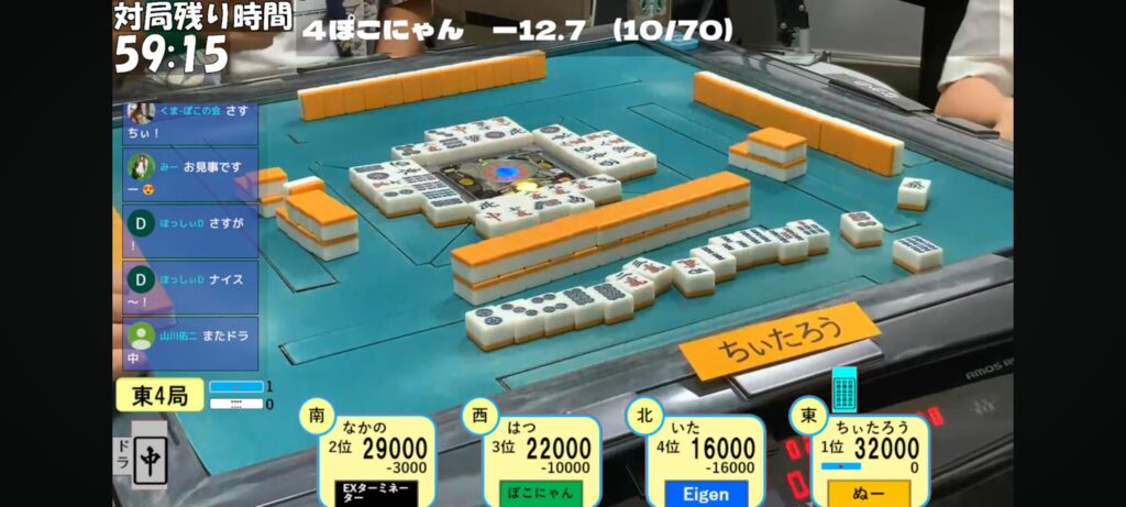 第1戦目はなんと言ってもぬーのほっしぃ選手の親国士無双!