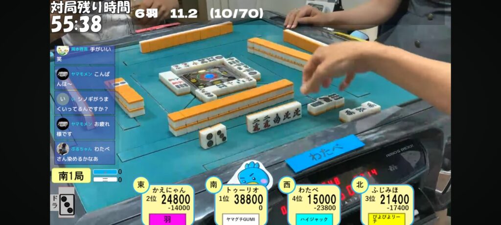 わたべ選手は苦しい半荘でした。何も出来ずといった感じでした。
