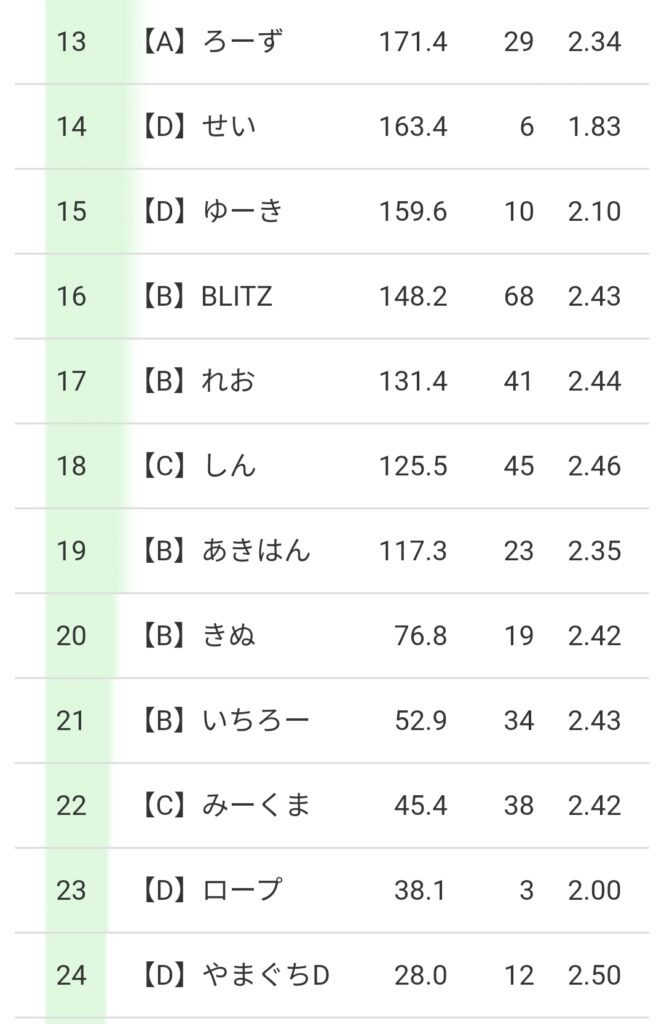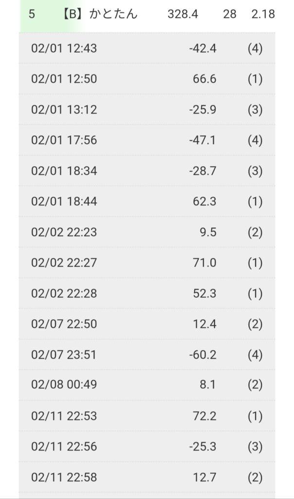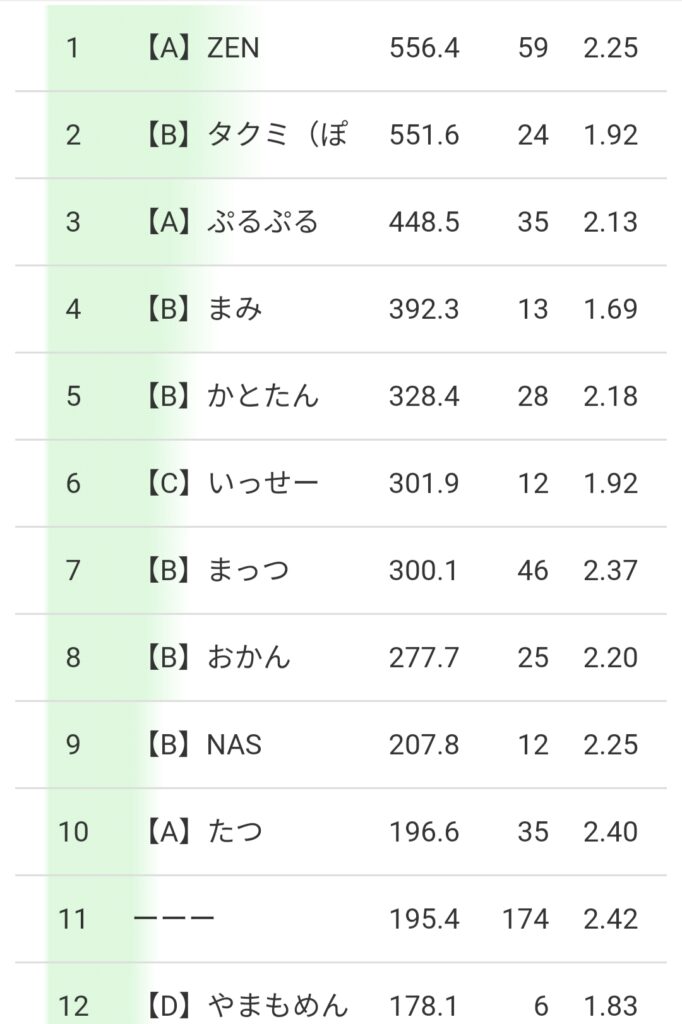 2月のぽこリーグはBリーガーがしっかり結果を残して盛り上がりましたね!プラス76.8のきぬさんが降級となってます😅どんどん盛り上がっていって欲しいです!