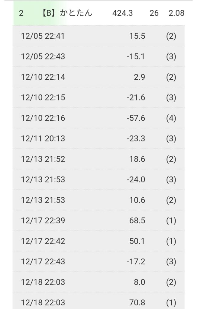 それを除くと17戦10トップですからね😳良く手が入ってましたし、良く集中して打ててたと思います。毎月は難しいですがこれからも結果を出していこうと思ってます!かとたんと真剣勝負したい方は花一19時から毎日募集してますよ😆