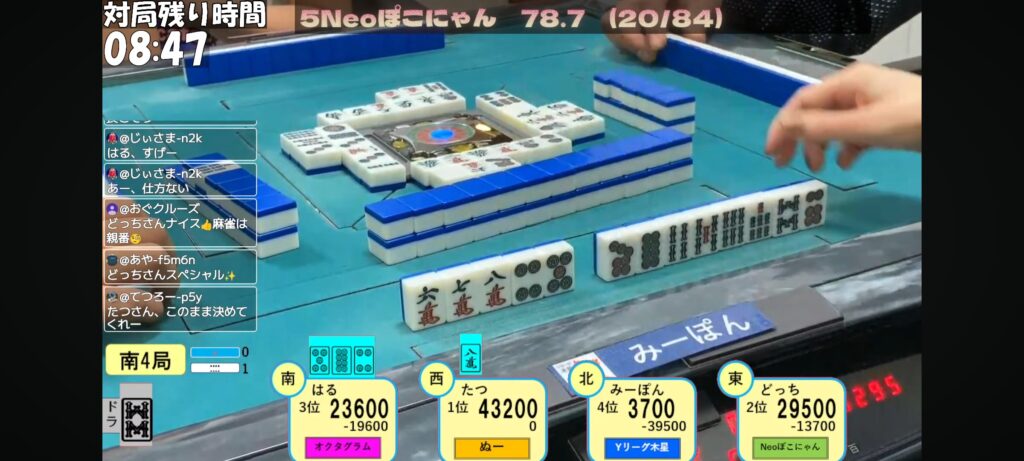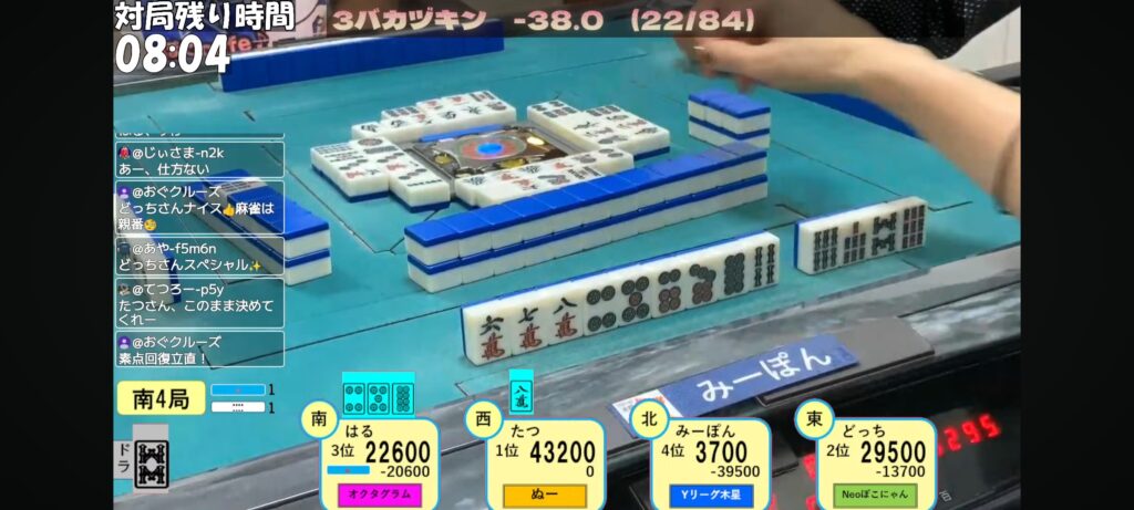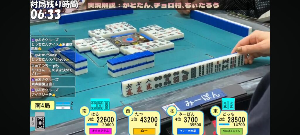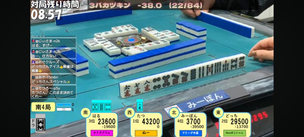 そして、はる選手のリーチが入り現物を抜いてしまう…