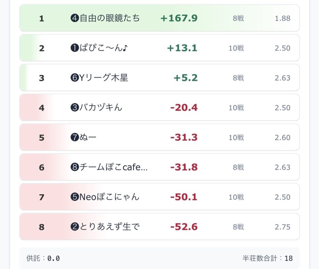 第6回福岡麻雀サークルぽこの会チーム戦17日目