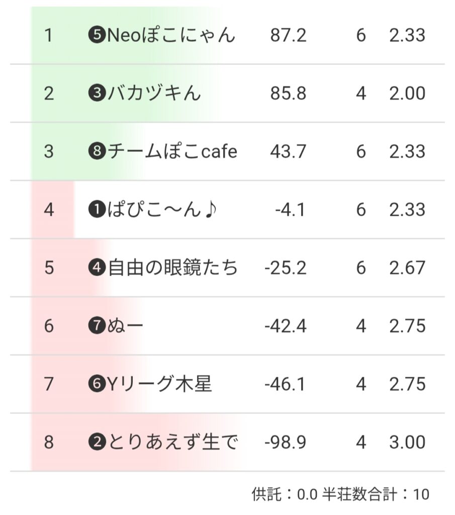 第6回福岡麻雀サークルぽこの会チーム戦3日目