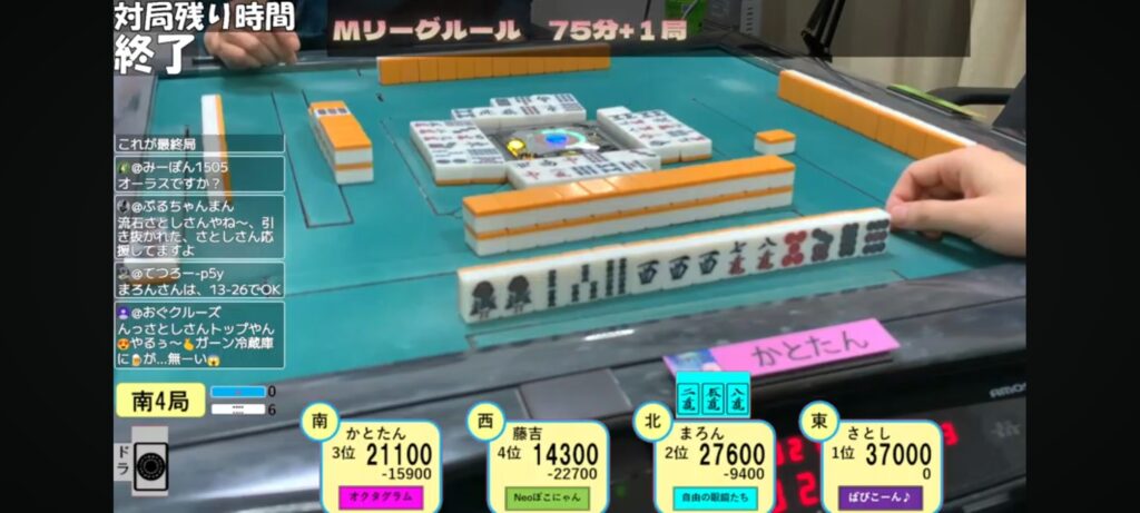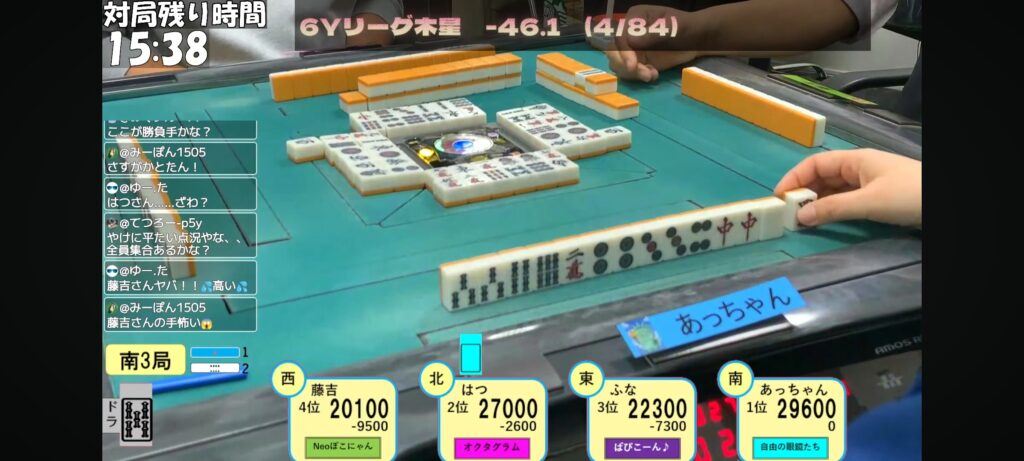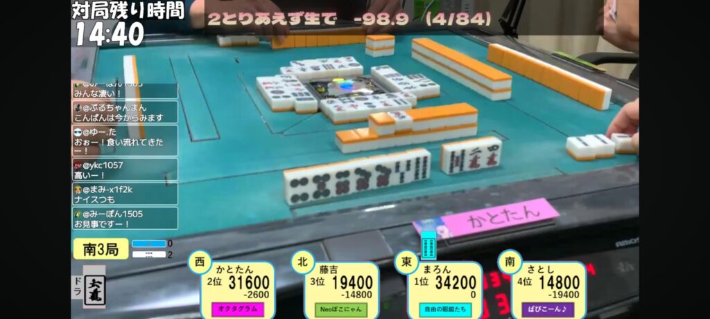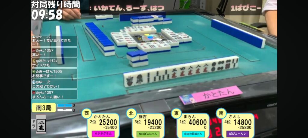 南3局までトップ目だったかとたんは辛うじて3着でした😅