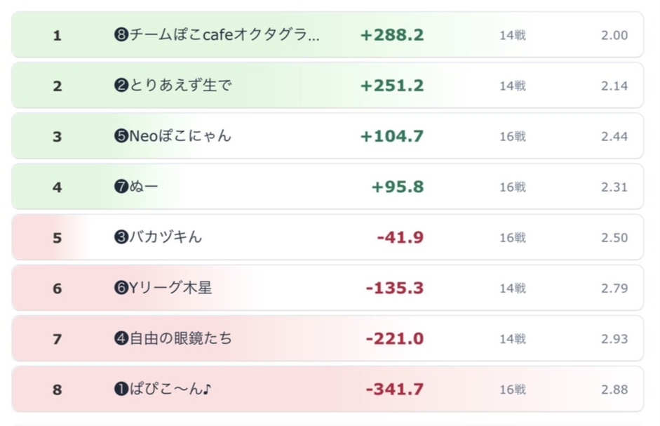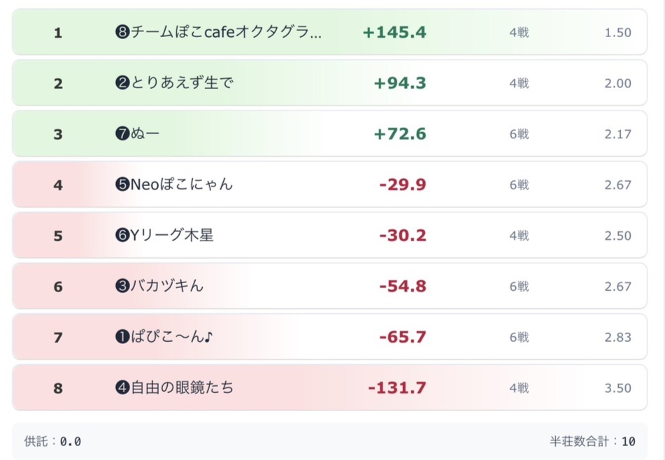 第6回福岡麻雀サークルぽこの会チーム戦9日目