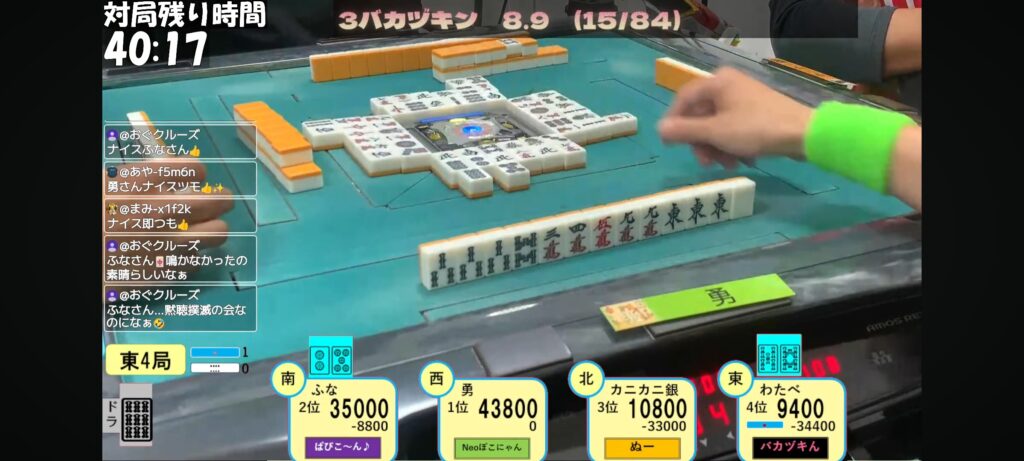 そしてトップ目勇選手から満貫直撃となりました!ナイスダマテン🌟