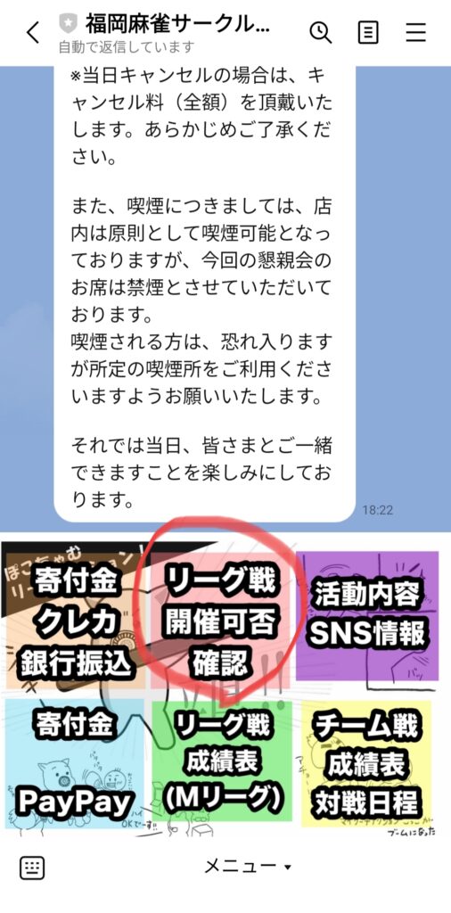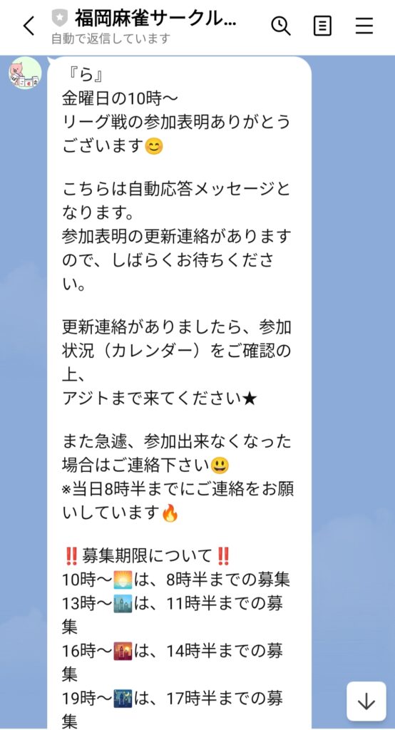 まずは福岡麻雀サークルぽこの会公式ラインに登録‼️