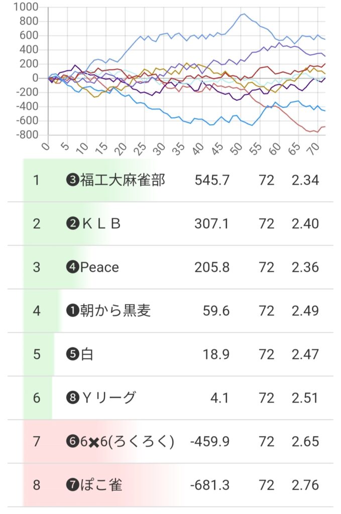 ちなみに福工大麻雀部とKLBは確定ですね。配信も時間制限あるので250以上負けるのは想定出来ませんので。