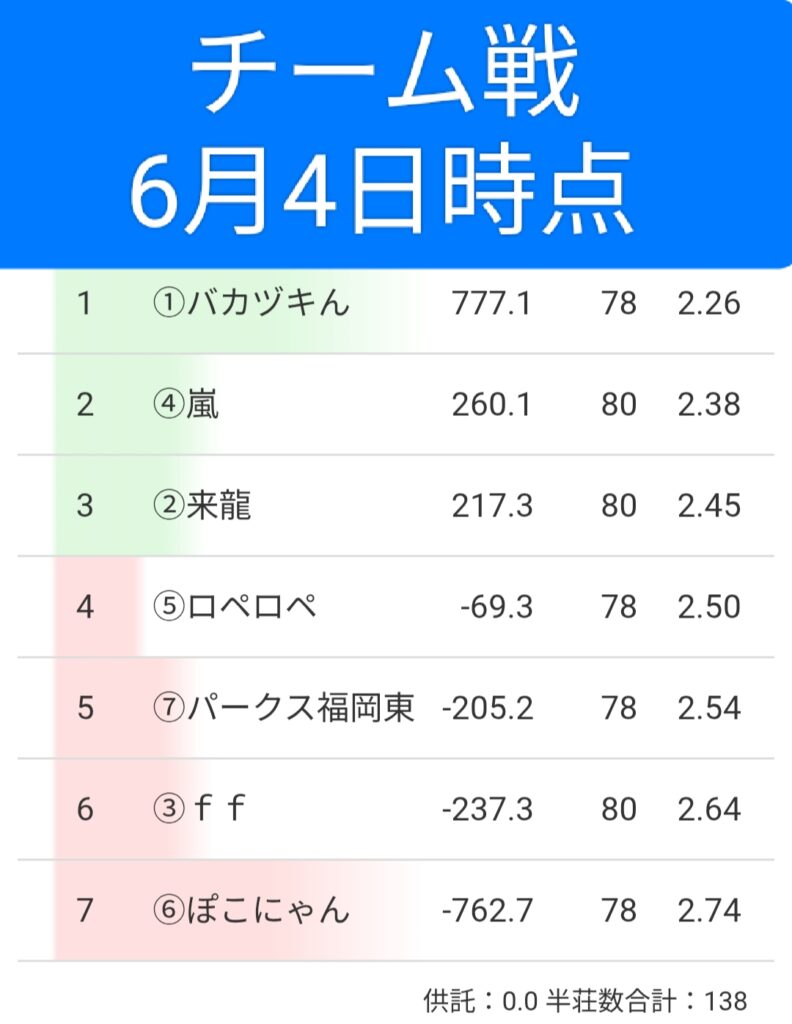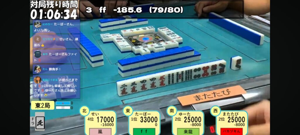 昨日行われました福岡麻雀サークルぽこの会第四回チーム戦ぽこチーの配信対局。