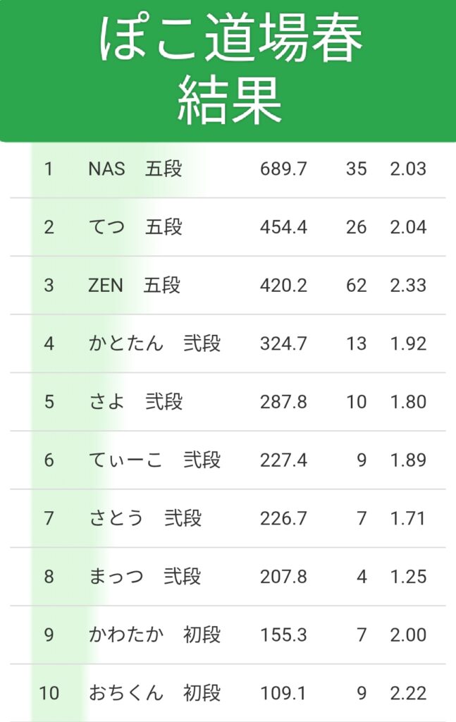 となります。上位4名は配信対局て節のチャンピオンを決めますが、てつさんはすでに冬チャンピオンですので、5位以下の人に権利がいきます。誰が配信出るかはお楽しみに。
