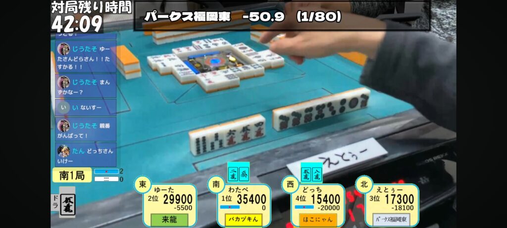 昨日の配信は①バカヅキん②来龍⑥ぽこにゃん⑦パークス福岡東の4チームの対局。