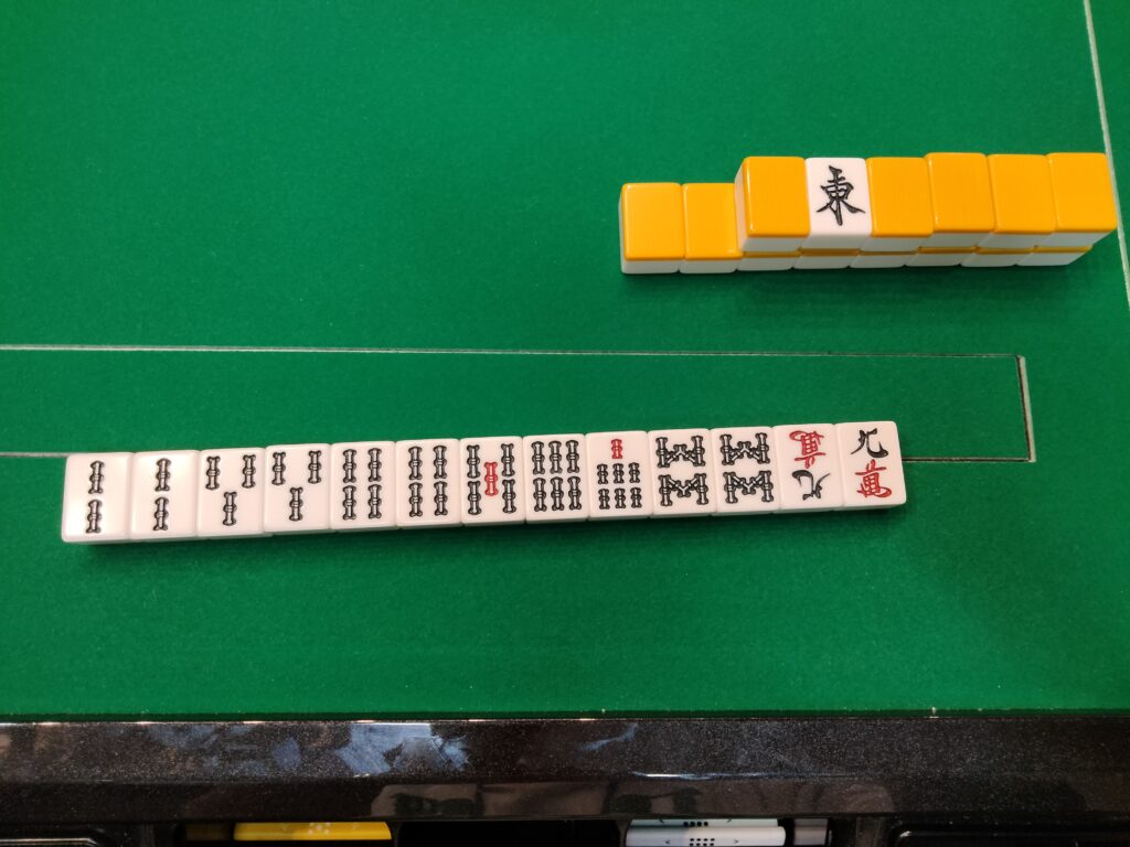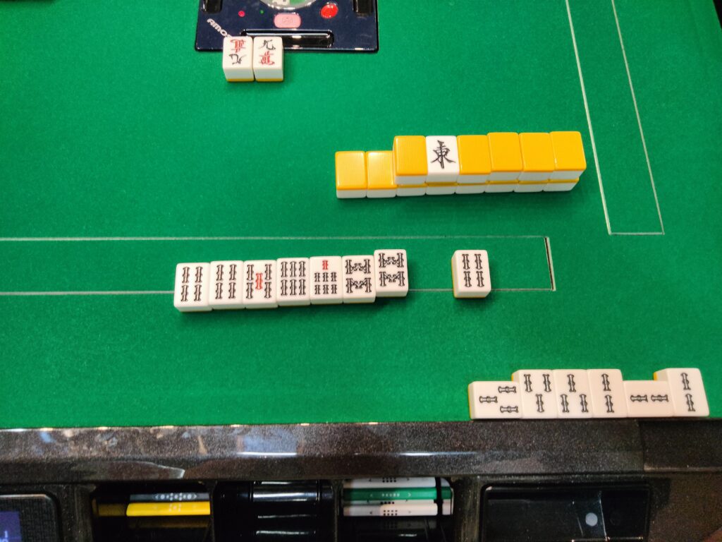 イーペーコーのみのテンパイです。待ちは8sと9m。もちろんリーチをしても良いですが…