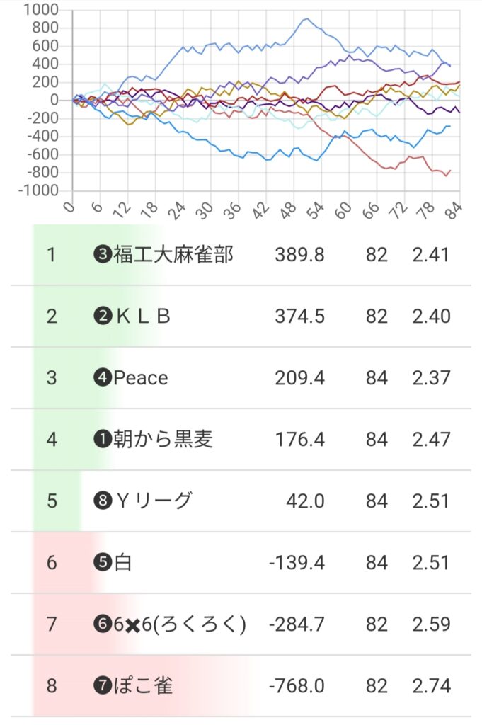 土曜日配信ありますが1.2.7.8位のチームでの対局なので上位チームスコアがどうなるかと言った所で順位変動はないですね。