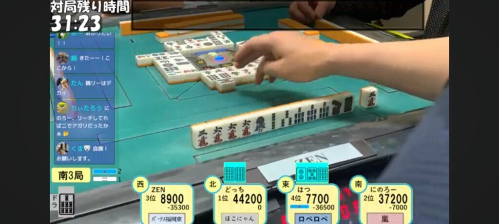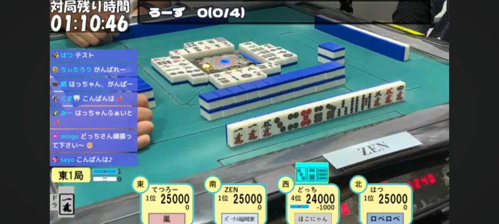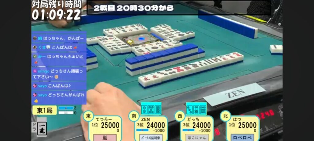 パークス福岡東がトップ、2着目で一気に回復!さすがは総大将ZEN!堅守からの鋭い和了で圧倒しました!